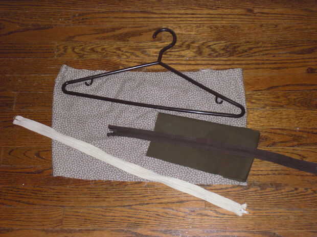 Usé algunas tela y cremalleras que tenían en mano. También se pueden utilizar restos. Generalmente se encuentra en un compartimiento en el almacén de la tela. Son las piezas demasiado pequeñas para vender a precio completo, así que a menudo usted puede escoger para menos de un dólar.