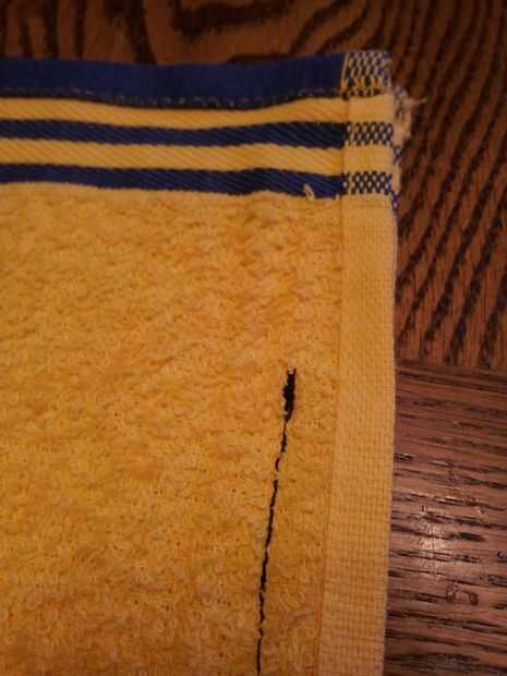 - Coser directamente a lo largo de los bordes deshilachados de la parte inferior y lado de la toalla, esto evitará que los bordes de desentrañar.
