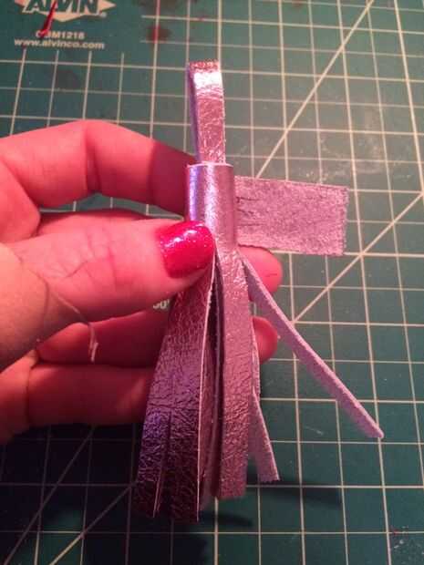 7. Coloque la tira extra que cortó al principio y comenzar a rodar su borla hacia dentro, bien. Doblé mi para crear un bucle, pero esto no es necesario.