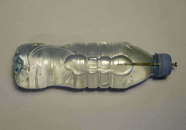 es divertido fácil reutilización ad capaz dePaso 1: Primero conseguir una botella de agua que es fácil de Squeez conseguir una botella que es comer para apriete y tenga la tapa. consigue un encendedor y una aguja o tenedorPaso 2: Haga el orificio Cal