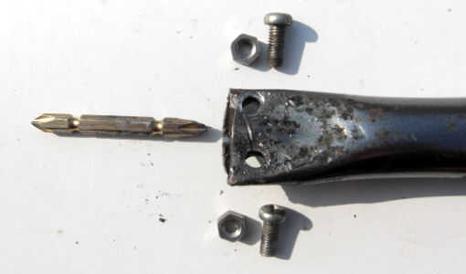 -dos tornillos de máquina cortos y las tuercas. Utilicé tornillos de 1/4 de pulgada.