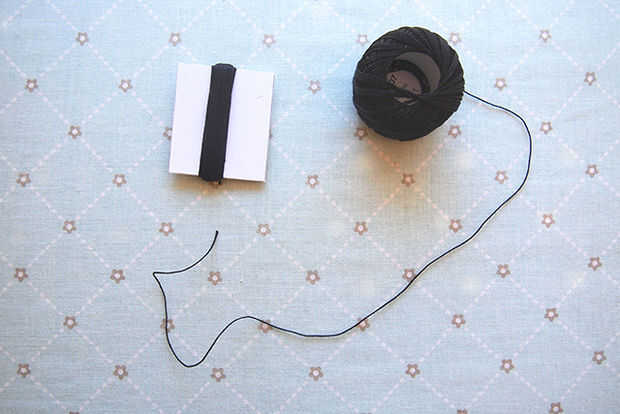 De la borla. Decidir cuánto tiempo desea que su borla al se de punta a cola y corte un pedazo de cartón que el tamaño. Mis borlas fueron 2 de 3/4 pulgadas largo, para esta bufanda. Envolver el algodón de la perla alrededor de la cartulina hasta que obtengas la cantidad deseada de hilo de espiga.