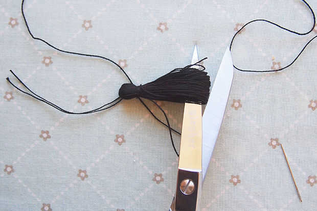 Corte la parte inferior de la borla y Sobrehilar cualquier extremos que pueden ser desiguales. Repita estos pasos para obtener todas las 4 borlas.