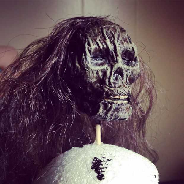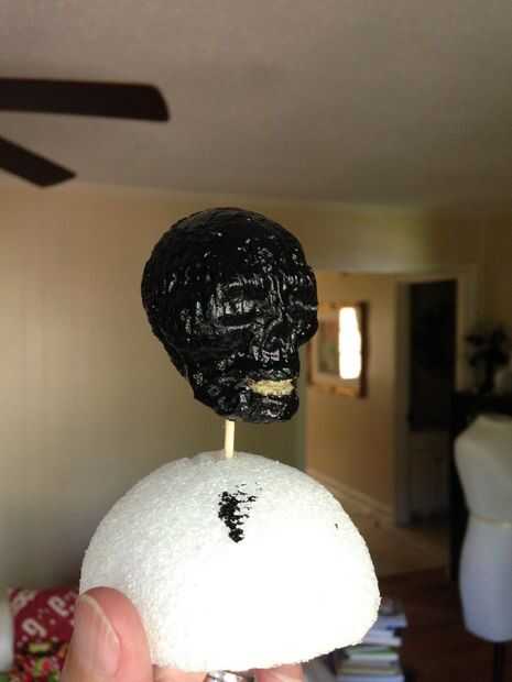 Nota: Si vas a colgar la cabeza del pelo en lugar de montaje como en este proyecto. Tener algunos o todos el objetivo de pelo encima de cuando está pegado a la cabeza.