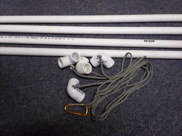 Cuando esté todo hecho acampar y utilizar su ducha (o cambiar) recinto puede simplemente separe el PVC piezas para fácil almacenamiento y transporte.  Terminé añadiendo un beener al lazo en la mía así que pude conectar a una cuerda colgante más fácilmente.