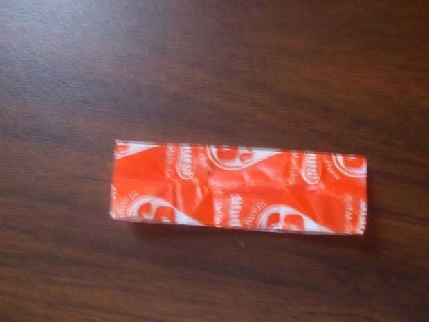 usted puede hacer fácilmente una cadena de contenedores starburst o goma de mascar. Estoy usando envolturas starburst desde hoy comí algunos, pero goma envolturas trabajo igual de bien.Acabo de hacer una cadena de un paquete de destellos, pero si tie