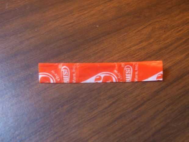 usted puede hacer fácilmente una cadena de contenedores starburst o goma de mascar. Estoy usando envolturas starburst desde hoy comí algunos, pero goma envolturas trabajo igual de bien.Acabo de hacer una cadena de un paquete de destellos, pero si tie