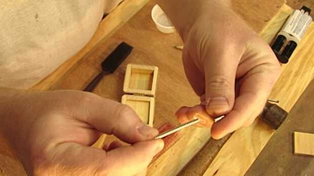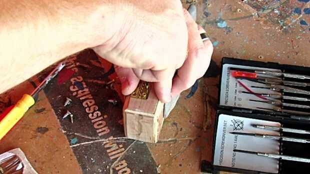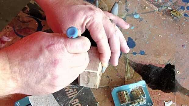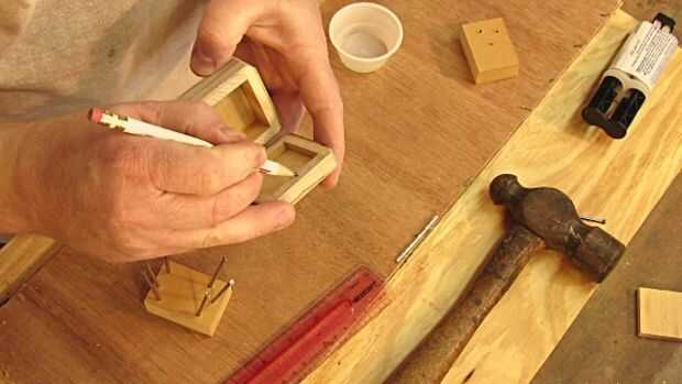 Ahora fije mi top a mi fondo y ajuste seco mis bisagras uniformemente los espacios. Me marca mis puntos del tornillo con una lezna micro casera que comenzó como un destornillador joyeros. Entonces yo uso atornillar todos los tornillos a mano.
