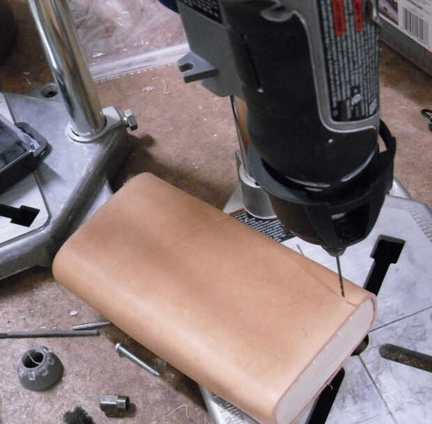 Nos unirá finalmente el cuero a la madera con los remaches y cose parte de la piel juntos. Así que tenemos algunos agujeros.