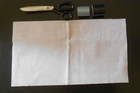 Pedazo de tela un poco más ancha que su ipad y unos 15cm de largo, tijeras y algo de cinta aislante. Iban a usar plata y negro, pero encontró que el negro parecía impresionante por sí mismo.