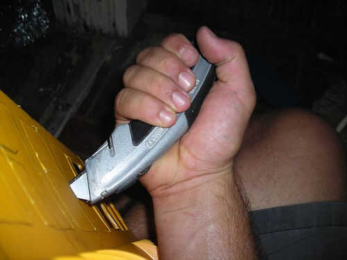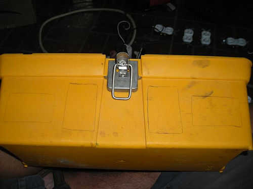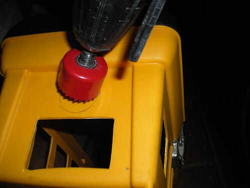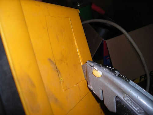 Para cortar las formas, cuidadosamente use una utilidad de disco, sierra o cualquier otra cosa que funciona bien para el material de la caja de herramientas. Si utiliza una cuchilla de utilidad, no puedo subrayar bastante cuidadosamente: son fáciles de ajustar, y cualquier rojo que ves en la caja de herramientas es de yo hacerlo en mi dedo:)