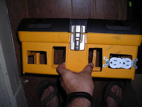Básicamente, se trata de decidir cuántos y donde quieras los interruptores, enchufes y luz. Si estás haciendo un montón de algo, te recomiendo hacer un recorte de cartón un poco más grande que el tamaño de tu parte y este esténcil en el lado de la caja de herramientas; Si sólo haces 1 o 2 de un componente, es probablemente no vale la pena el tiempo para hacer la plantilla.