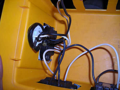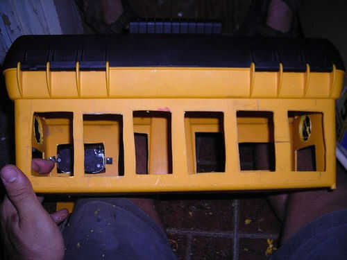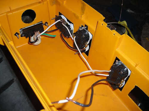 Después de que tenía todo atado con alambre juntos, aseguraron todo el asunto a la caja de herramientas. Para las salidas de