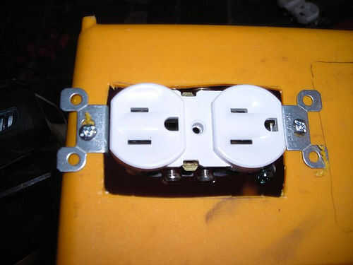 Esto significó cortar un agujero piloto para los tornillos incluidos y luego apretándolos a través del plástico. En las tomas de luz, que es capas de cinta aislante envuelto hasta que tuviera un grosor en cada lado que fue suficiente para mantener la toma de corriente de desplazamiento dentro o fuera de la caja.