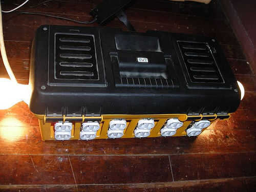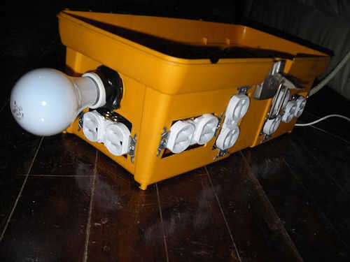 -Provisión de separación entre los cables expuestos, AC-que lleva y lo pones en la caja de herramientas. Esto podría doblar los alambres al lado y colocando una capa interna de plástico entre los cables y el contenido de la caja de herramientas.