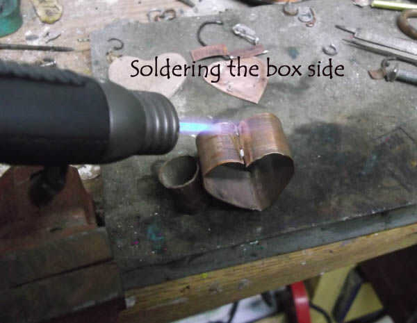 Para hacer la tapa de ajuste a la caja necesitamos otra forma de corazón para la soldadura en la parte inferior de la tapa que forma un labio (ver foto)