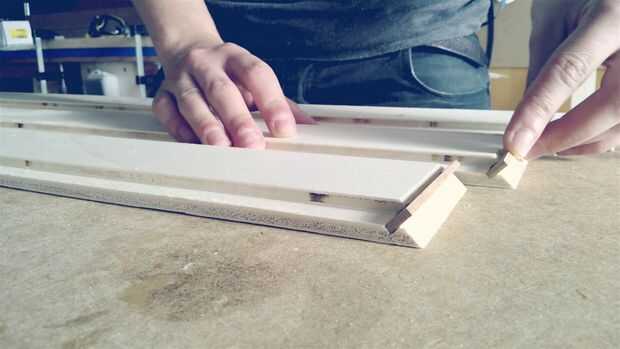 Después de que las ranuras se cortan, necesitamos hacer algunas tiras de madera sólidos de una tira y tunear para ser pierden un poco en las ranuras para permitir espacio para el pegamento.