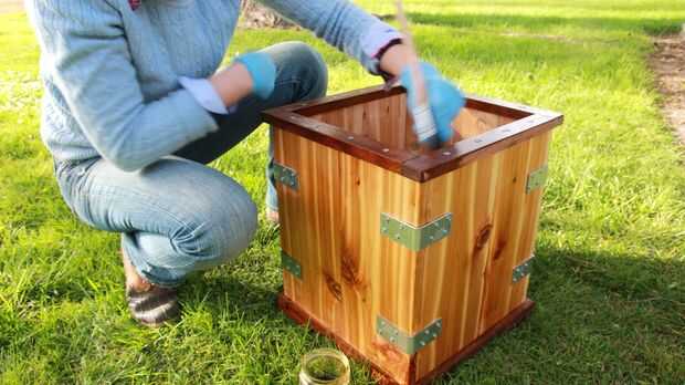 Si desea mantener intacto el color del cedro, asegúrese de aplicar algunos spar uretano, lo deje a tiempo con el tiempo. Si no utiliza cedro, siempre podría pintar la madera en ambos lados para evitar la putrefacción y decaimiento, especialmente si usted está pensando en plantar algo ornamentales tales como flores o arbustos.