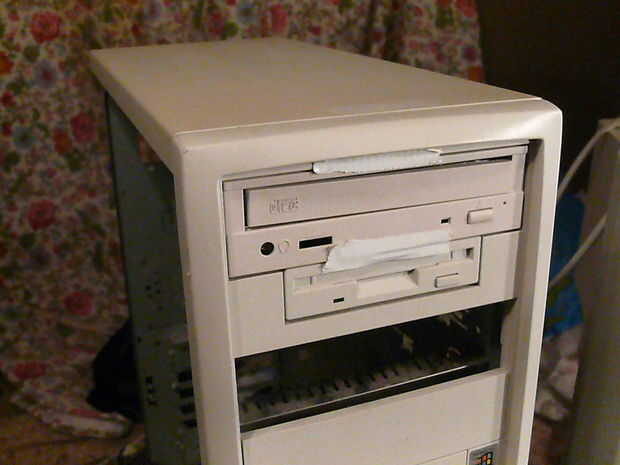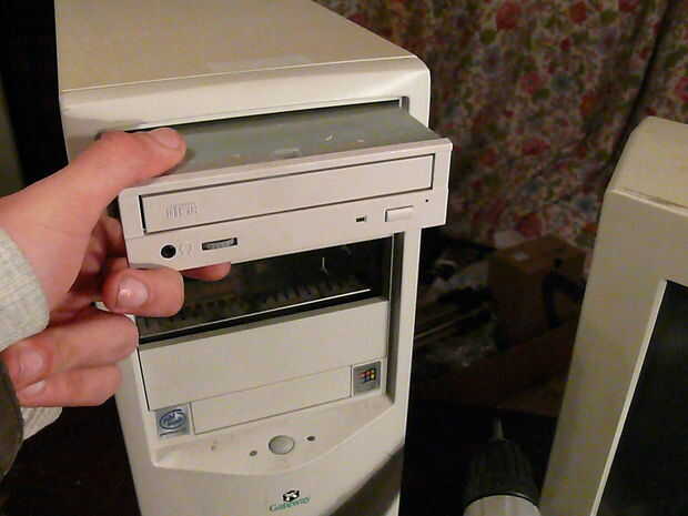 -desde allí iba a la unidad de cd que para esta cubierta esencialmente sólo haga clic en hacia fuera. (decidí mantener la unidad de disquete utilizar como un divisor de la bandolera terminada / maleta)