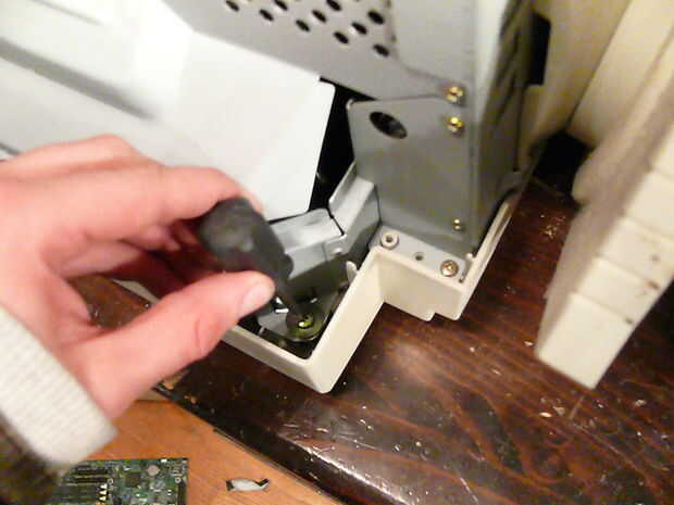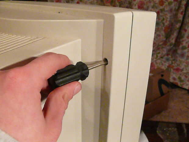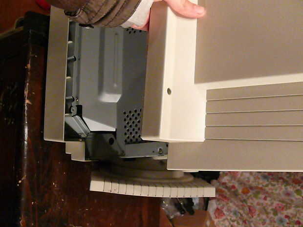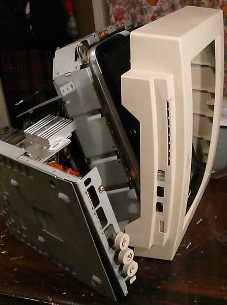 -Desenroscar la parte trasera y quitar la cáscara, desenrosque algunas más (mucho más), luego retire jaulas, intentan tirar de cosas pero no funcionan, huevos de Pascua para los tornillos ocultos desenroscarlos, desenganche las piezas al azar. como ya he dicho antes todo lo que necesitamos es la carcasa frontal y la jaula de la Plaza (la jaula cuadrada es el cuadro gris que ve separar de la pantalla/del tubo del monitor y más tarde sentado solo en la carcasa frontal) y después es casi todo deshecho esas 2 partes finalmente deben ser capaces de cosechar.
