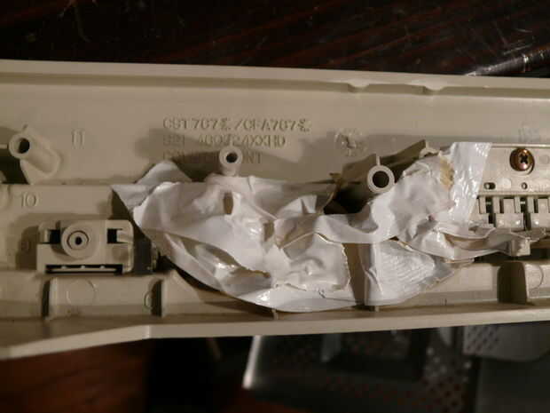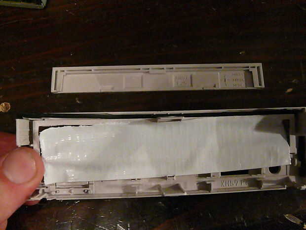-a continuación quería quitar la placa frontal de la unidad de cd por lo que pude encajarla a añadir para flare de artículo terminado. en la parte posterior de esta unidad de cd hubo 3 lengüetas pequeñas que tuvo que ser presionado para quitar la placa frontal. Saqué la placa y tubo con cinta en su ubicación original. (la cinta del conducto en la fotografía en el frente fue significada solamente para sostener temporalmente en lugar mientras que conducto grabado en el interior y puede ser retirado al finalizar