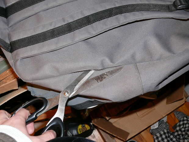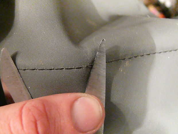 -muchas posibilidades. I utiliza las tijeras para romper el hilo y luego arrancó el resto allí. También doy un ejemplo de cómo cortar el hilo incluso cortar los hilos de rosca individuales en el interior y revestimiento con una maquinilla de afeitar... también sólo podría cortar la bolsa sí mismo y hacer caso omiso de las costuras en todos.