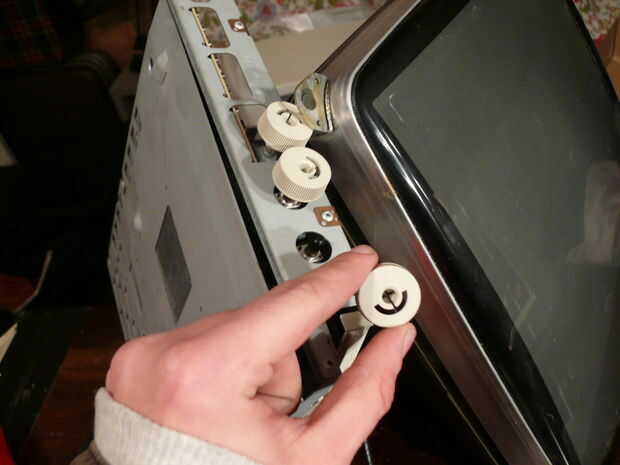 -Regresé después de conseguir las dos piezas anteriores para agarrar las 3 perillas y conducto cinta nuevamente dentro de sus puntos que deben ser lo último para el monitor como un todo. * Que no partes del monitor para este proyecto pero en los planes originales una de las jaulas fue utilizada en el caso del ordenador portátil como la espalda *