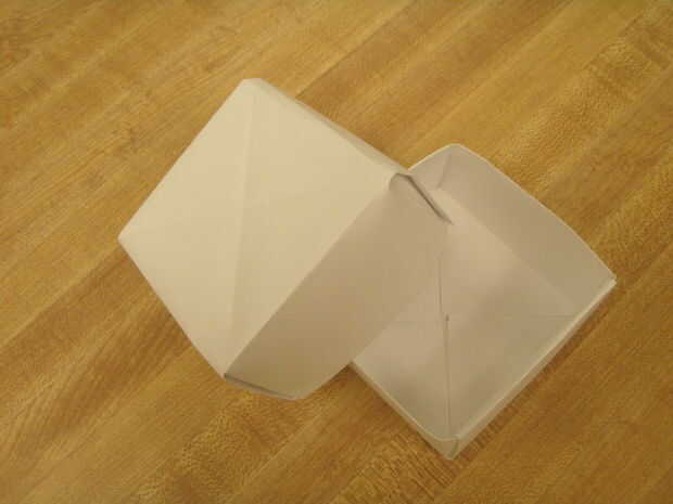 Para hacer una tapa, hacer otra caja y encajar uno dentro de otro. (Ayuda si haces la tapa un poco más grande o más pequeño que la caja original. Esto puede hacerse comenzando con una más pequeña o más grande pieza cuadrada de papel al principio.)