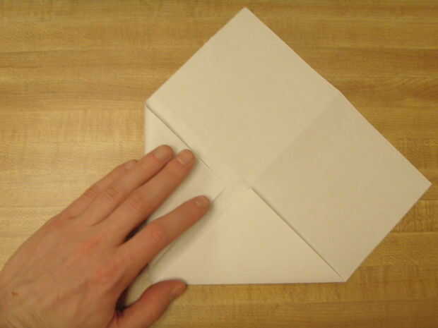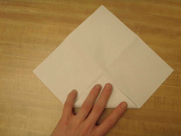 Ahora toma las esquinas y doblar en el centro de la Plaza, usando los dos pliegues anteriores como una guía.