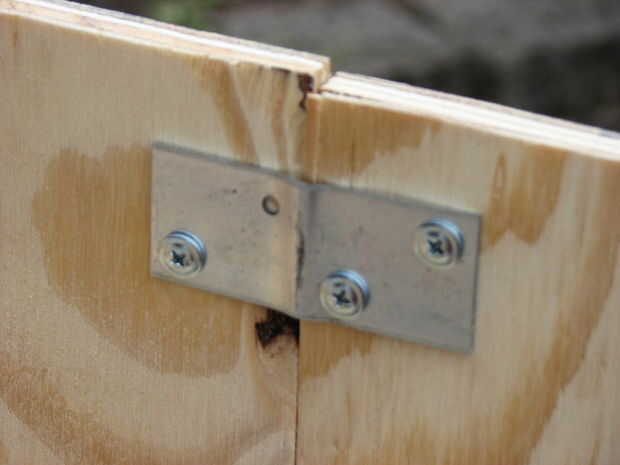 En este paso os adjunto todos los cuatro paneles en el panel superior con tornillos de 1". Corrí de madera así que verá que usé un pedazo más pequeño de la madera contrachapada para cubrir toda la zona. Para asegurar los paneles de la mudanza que he utilizado algunos soportes en L para sujetar dos paneles juntos. La parte donde se hizo un panel de dos piezas de madera contrachapada, les sujetan como bien utilizando un soporte plano. Usé algunos sellador sellador al aire libre entre las articulaciones para mantener el agua fuera. La razón por qué yo no uso cola de carpintero para las juntas es porque no sé todavía si mi artilugio va a funcionar o no. Si no te funciona porque el generador no está recibiendo suficiente aire, puedo que necesito quitar un panel o dos. Pegamento de carpintero debido a su fuerza de vinculación hará esta tarea muy tediosa. Llené todas las grietas con masilla. Después de que el sellador seque sellé la madera con el sellador de la cubierta.