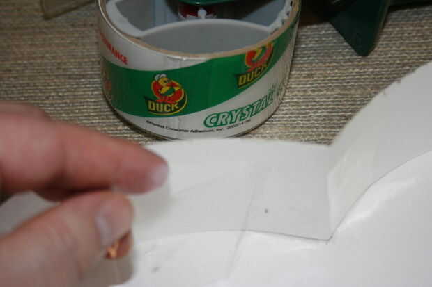 Línea de un punto de su círculo de cartulina con la intersección en su base y las aletas para el círculo de la cinta. Ahora doblar el círculo en forma de corazón otra vez y trabajar su camino en este nuevo corazón enganchar a la base con cinta de embalaje transparente.