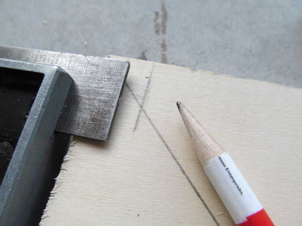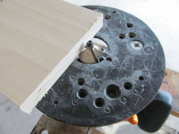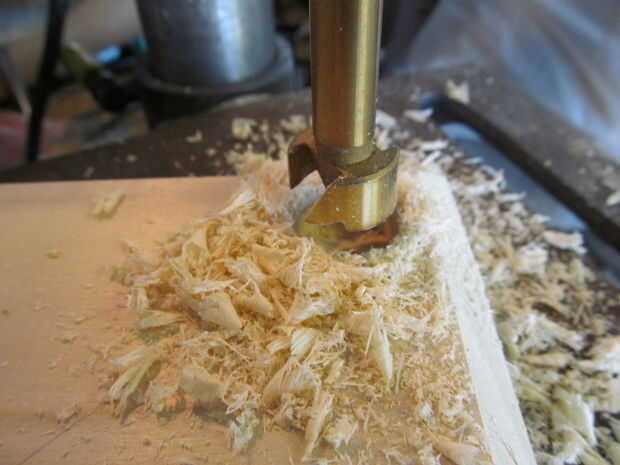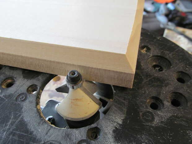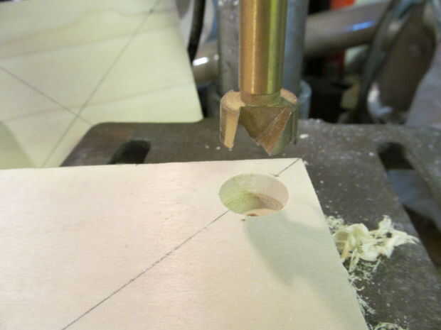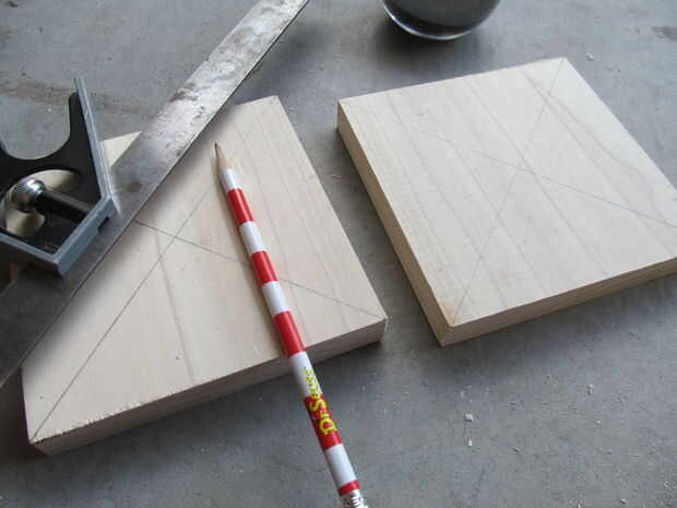 empecé cortando dos cuadrados de una tabla de álamo. He marcado las esquinas para los husos y sacarlos había perforado con una broca forstner. Yo entonces había chaflanado un lado de las plazas mientras redondeo sobre el otro.