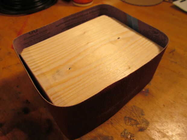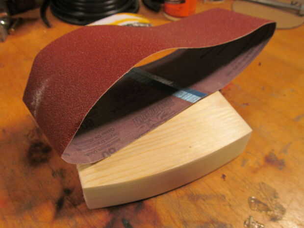 Terminé haciendo un bloque de lijado curvo de madera. Quité algunos materiales del centro de la espiga a centro la cuadra durante el lijado. Una vez que era la forma correcta que pasó a la siguiente.