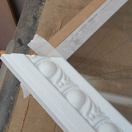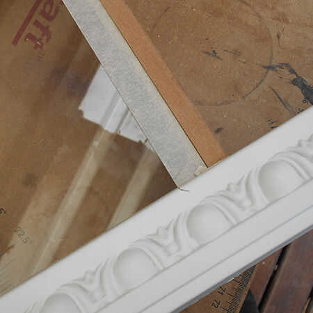 5. corte un extremo de la moldura de pino o cornisa poliestireno y lugar en la esquina de la cinta.