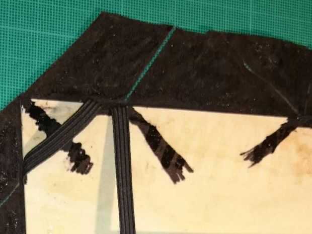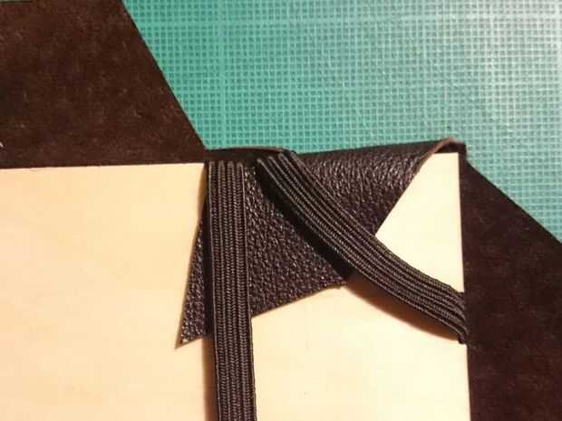 Antes de pegar, doble las lengüetas de cuero alrededor del elástico y sostenga en su lugar para ver el ajuste. Si hay pequeñas lagunas exponiendo la madera por debajo, la apariencia puede reducirse más o menos colorante en la zona con la pluma de la pintura.