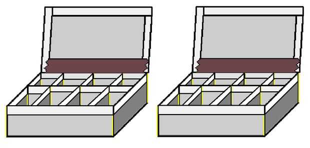Ahora debe tener dos cajas que tienen las tapas y los compartimentos que no se escaparán. Puede poner tiras de papel en los bordes de los compartimientos para que nada pequeña puede tener fugas en ellos. Es un dolor tratando de resistores minúsculos para volver a salir.