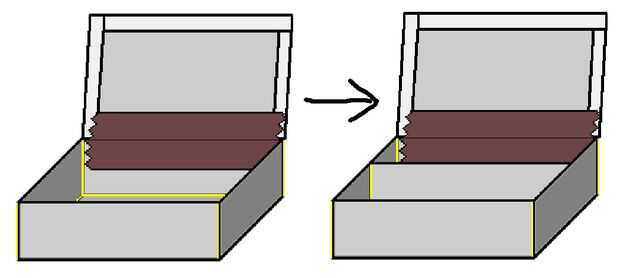 Ahora usted puede hacer pequeños pedazos de cartón y hacer lo mismo. Utilicé tiras de ocho en la capa inferior (que hace 10 compartimientos) y 6 en la capa superior (seis compartimentos de la fila superior) y dos en la fila inferior, aunque realmente no importa cómo muchos compartimientos se colocan en sus necesidades. Es importante que la parte superior de las tiras de cartón línea como usted puede hacerlo en la parte superior de la caja, para que la parte superior entera de las paredes de la caja y el compartimiento están al mismo nivel. Esta manera usted puede poner la tapa y gire la caja de cualquier ángulo que te gusta sin objetos pequeños derrames en otros compartimentos. Si se pone duro aplicar pegamento caliente sólo utilice sus dedos para aplicar sellador o pegamento a los lados y la parte inferior. Usted puede siempre bajar el pegamento para que no se preocupa de.