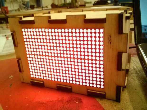 Matriz de LED de Adafruit. Es un juguete cool para jugar, si es difícil, pero muy bonita solo no es sentado en una superficie con la tarjeta de circuitos y cables expuestos. Por eso decidí hacerme una pequeña caja que se hace especialmente para caber esta matriz particular por el bien de presentación cuando se trabaja en proyectos futuros.