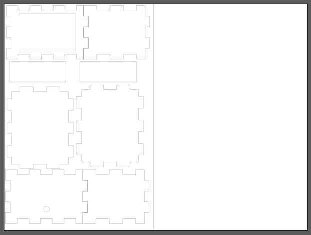 Abra el patrón en Illustrator y seleccione una de las piezas para hacer la parte delantera de la caja. En eso pice añade un rectángulo de 3 x 4.5 pulgadas donde se sobresalen la matriz (va a ser un ajuste exacto). También he añadido dos rectángulos más pequeños, como se puede ver en la imagen; Decidí agregar a fijar en la parte superior e inferior del interior para sostener y apoyar firmemente la matriz en su lugar.