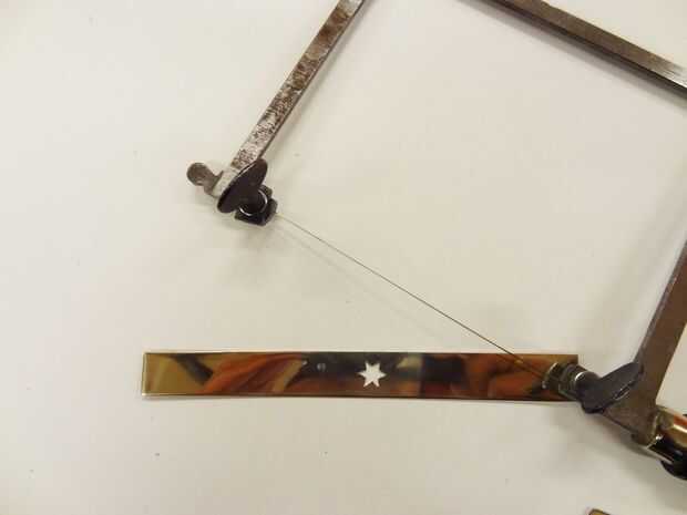 Prepare su joyería de la sierra (o jigsaw) y su diseño de corte. Utilicé una hoja para metal.