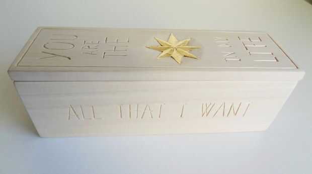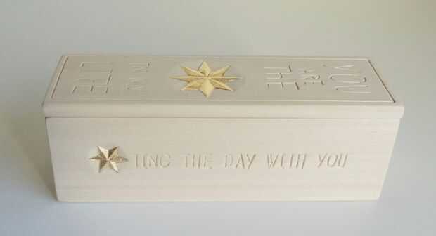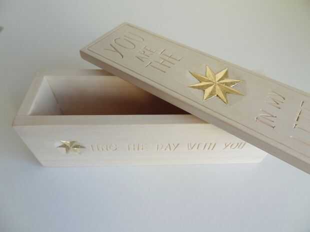 La caja se hace de Basswood. Soy un principiante en la talla y Tilo es suave y fácil de tallar. "Oro" que las estrellas. (Compré el más barata "hoja de metal"). Hay muchas primeras veces en este instructables: nunca tuve chapado en oro (gilting?) antes de, para pegar metal sobre curva madera es algo nunca probado antes y soy casi nueva talla de att. Así que siéntase libre de dar su comentario para su aprobación.