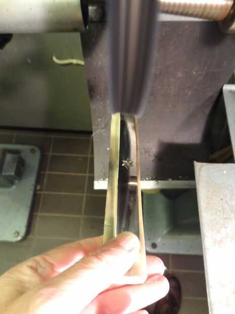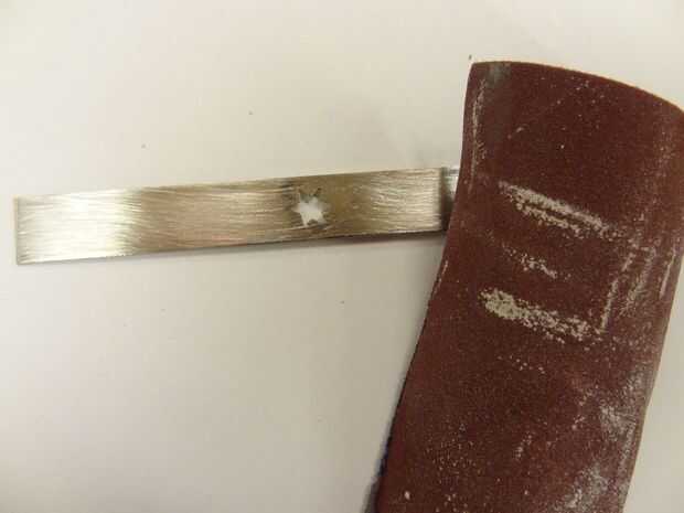 El metal es dejar de fumar suave así que usé un trozo de madera para apoyar la placa mientras que el pulimentar.