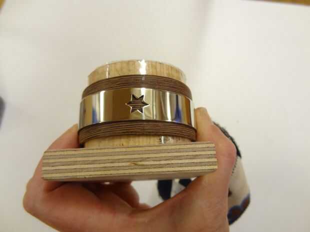 Doblar ambos extremos de la placa en la pulsera mientras todavía presiona el centro de la placa metálica en la pulsera con el pulgar.