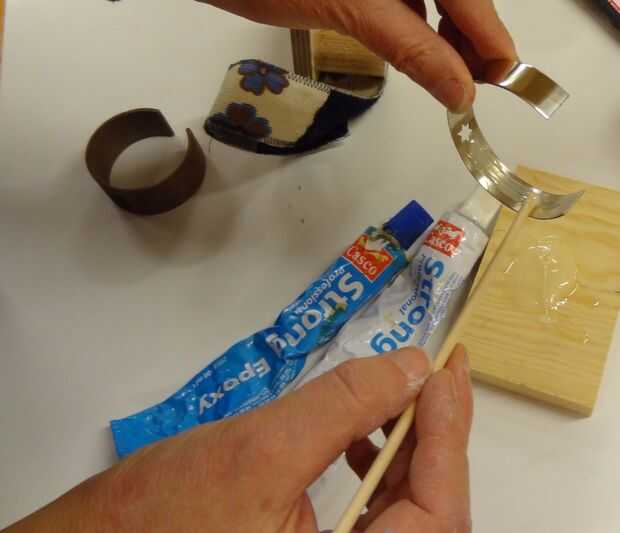 Mezcle el pegamento de epoxy y aplicarlo en el interior de su pulsera metálica. Pero tenga cuidado y no Aplique pegamento en el área alrededor de la estrella.