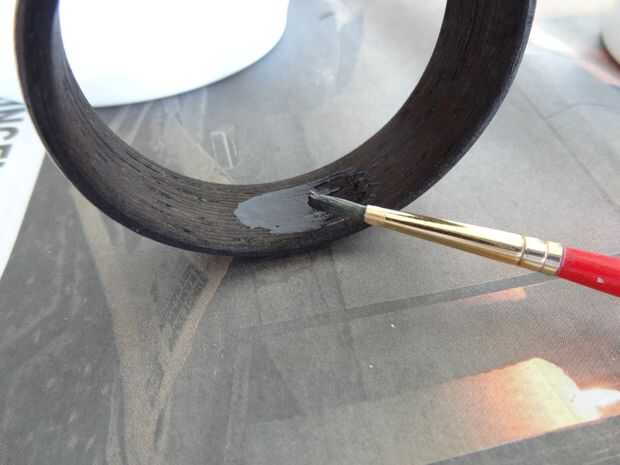 Yo quería tener una pulsera muy oscura. Pinté el interior y bordes con mancha marrón oscuro.