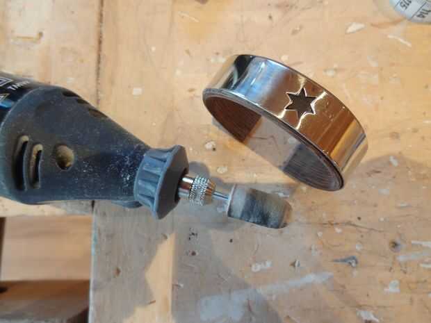 Lije los bordes lisos y pulir el metal con una Dremel.