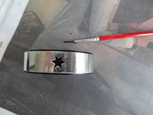 Por último, he pintado el interior de la pulsera con laca para evitar que la mancha de colorante de la piel.