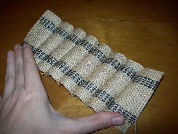 En primer lugar, tome dos de dos pulgadas ancho tiras en tus manos y coserlas juntas en un lado. Cuando termines, abrir la pieza. Por seguir añadiendo las tiras para que los ocho se suturan. Ver fotos para una mejor idea de lo que estoy describiendo.
