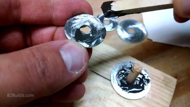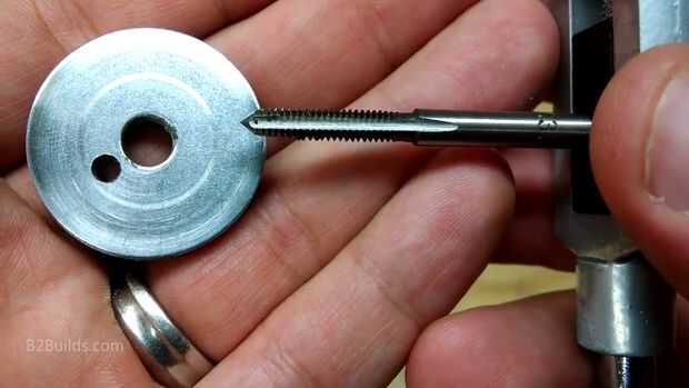 Luego perforar un agujero de 1/4" desde el centro y había aprovechado así podría hilo en alguna varilla roscada. Se me ocurrió usar hilos de 8-32, pero puede que tengas mejor suerte para encontrar hardware de 10-24 en la ferretería local.
