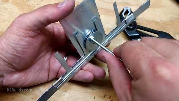 Luego usé una hoja gruesa de aluminio para crear una estructura más rígida para el deslizador se mueva en. Este marco es donde se monta el árbol de levas. Inclinó sobre las piezas del marco para bloquear el cursor en el lugar por lo que sólo podía mover izquierda y derecha.